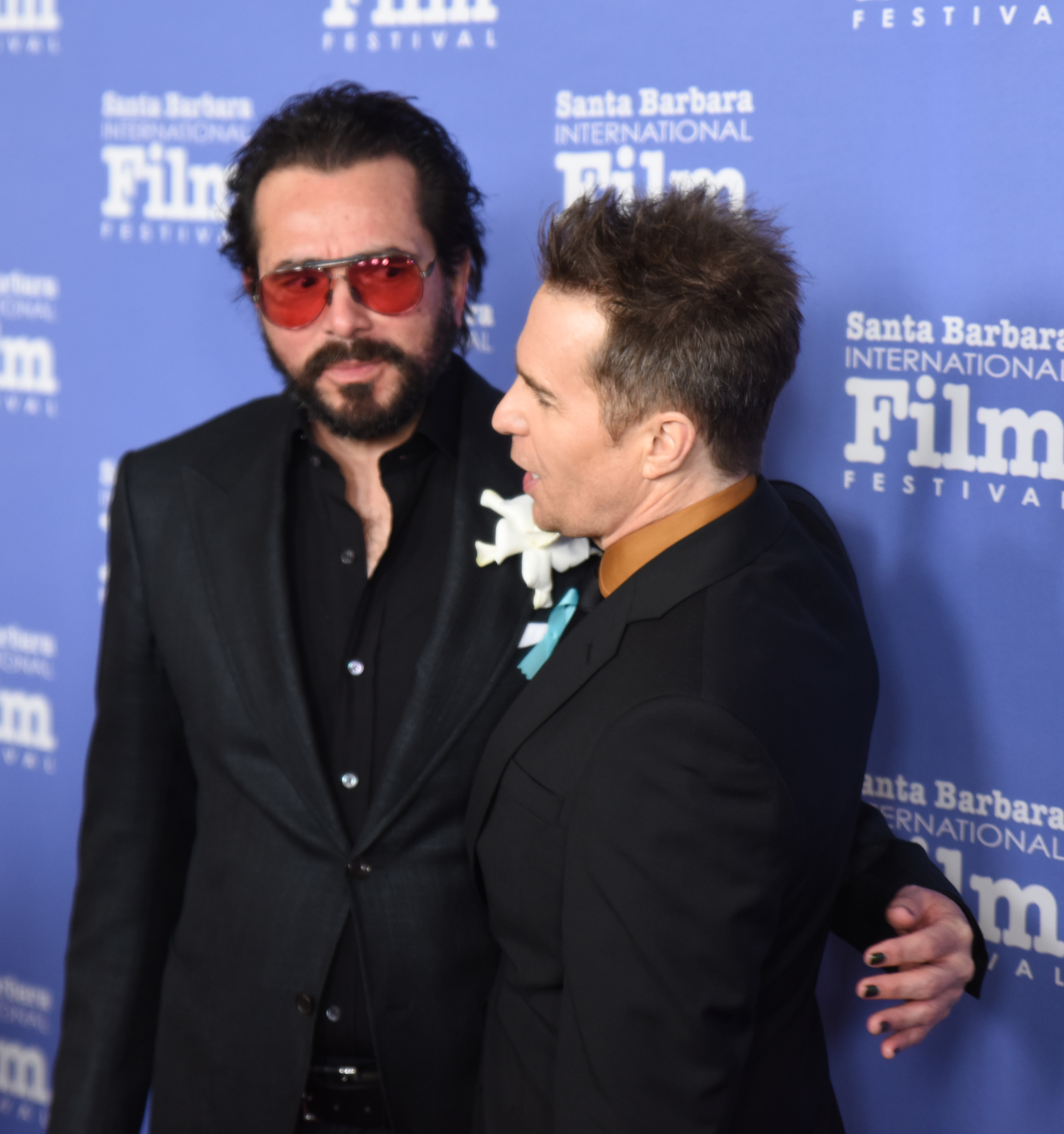 Roger Durling, Executive Director of the Santa Barbara International Film Festival (SBIFF) poses with actor Sam Rockwell, the recipient of the SBIFF American Riviera Award, February 7th, 2017. (Photo credit: Larry Gleeson/HollywoodGlee)