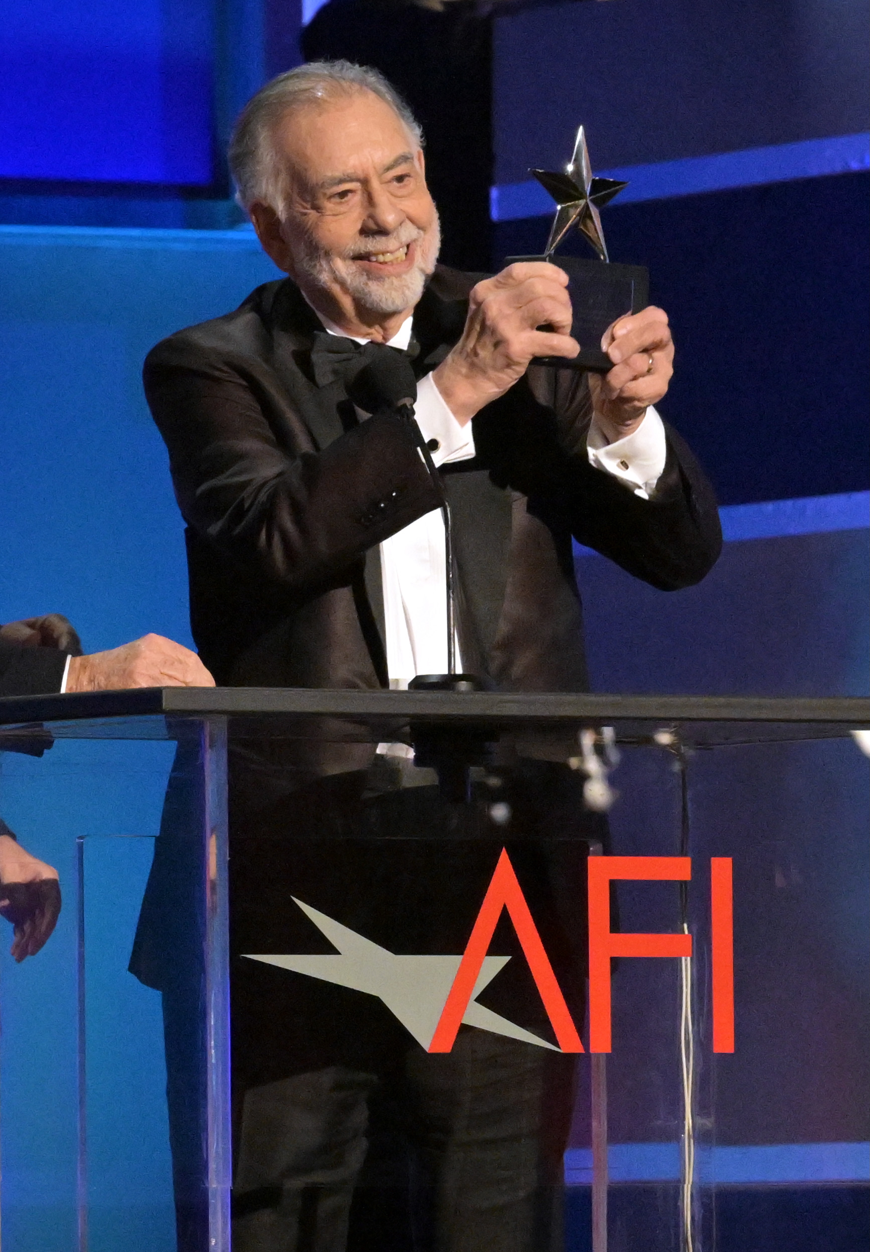 HOLLYWOOD, CALIFORNIA – APRIL 26: Francis Ford Coppola holds the 50th AFI Life Achievement Award onstage at the 50th AFI Life Achievement Award: A Tribute To Francis Ford Coppola at Dolby Theatre on April 26, 2025 in Hollywood, California. (Photo by Lester Cohen/Getty Images for AFI)